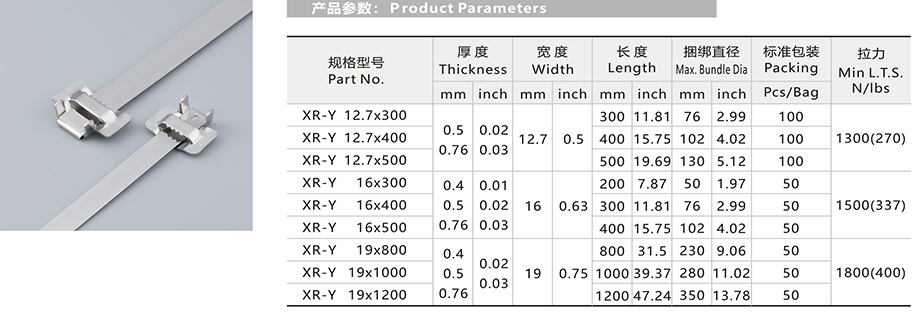 白鋼不銹鋼扎帶-牙型鎖緊式